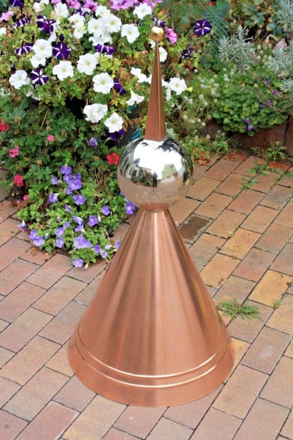 Gebe mit „Elvira“ eine wunderschöne klassische handwerklich gefertigte Turmspitze aus Kupferblech ab, welche sich hervorragend für die Montage auf einem Turm, einem Zeltdach, einem Walmdach oder ähnlichem eignet. Die sich weit öffnende runde Sockelform von „Elvira“ ermöglicht im Prinzip die Anpassung an nahezu jede Dachgeometrie. Eine solide handwerkliche Verarbeitung und die Auswahl ausnahmslos hochwertiger korrosionsfreier Materialien garantieren zudem eine lange Lebensdauer. Auf Wunsch und gegen einen Aufpreis von 120,- Euro kann die Spitze „Elvira“ auch mit einer 24 Karat vergoldeten Kugel geliefert werden. Bei Interesse bitte einfach vor dem Kauf kurz bei mir melden.