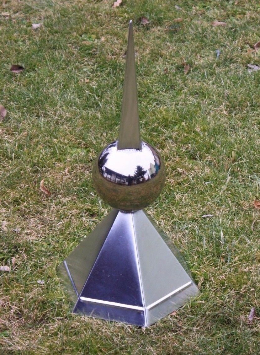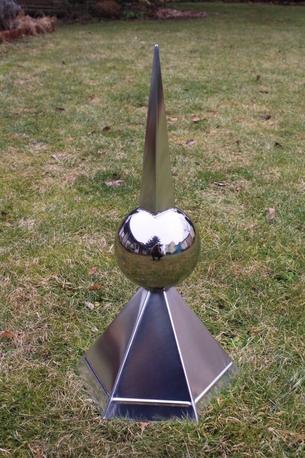 Verkaufe mit „Eva“ eine kleine aber feine handwerklich gefertigte Turmspitze aus Zinkblech ab, welche sich hervorragend für die Montage auf einem sechseckigen Gartenpavillon, einer Laube oder ähnlichem eignet. Eine Dachspitze ist nicht nur Schmuck, sondern dient vor allem der fachgerechten Abdichtung des oberen Treffpunktes der Dach-Seitenflächen. Die Abdichtung an diesem Detailpunkt am Dach ist immer etwas problematisch. Auf Wunsch und gegen einen Aufpreis von 60,- Euro kann die Spitze „Eva“ auch mit einer 24 Karat vergoldeten Kugel geliefert werden.