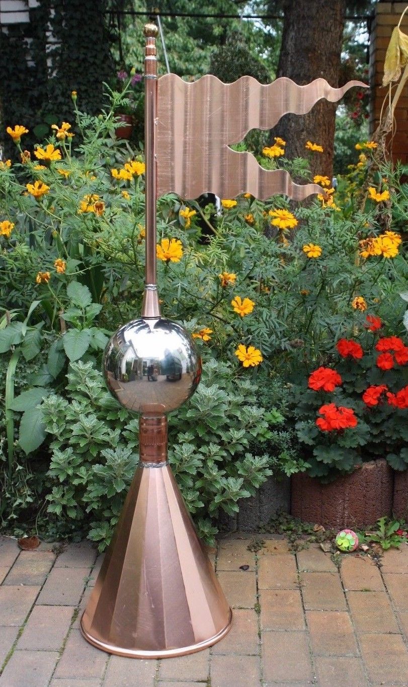 Biete mit „Nastjenka“ eine wunderschöne handwerklich gefertigte Wetterfahne aus Kupferblech, welche sich besonders für die Montage auf einem runden Pavillon, einer Laube o. ä. eignet. Die runde Sockelform erlaubt jedoch auch die Anpassung an die verschiedensten Dachformen. Die Verwendung ausnahmslos hochwertiger Materialien, die klassische Form und eine solide handwerkliche Verarbeitung lassen die Wetterfahne „Nastjenka“ zu einer wahren Bereicherung des Bauwerkes werden, auf dessen Dach sie ihre Heimat findet.